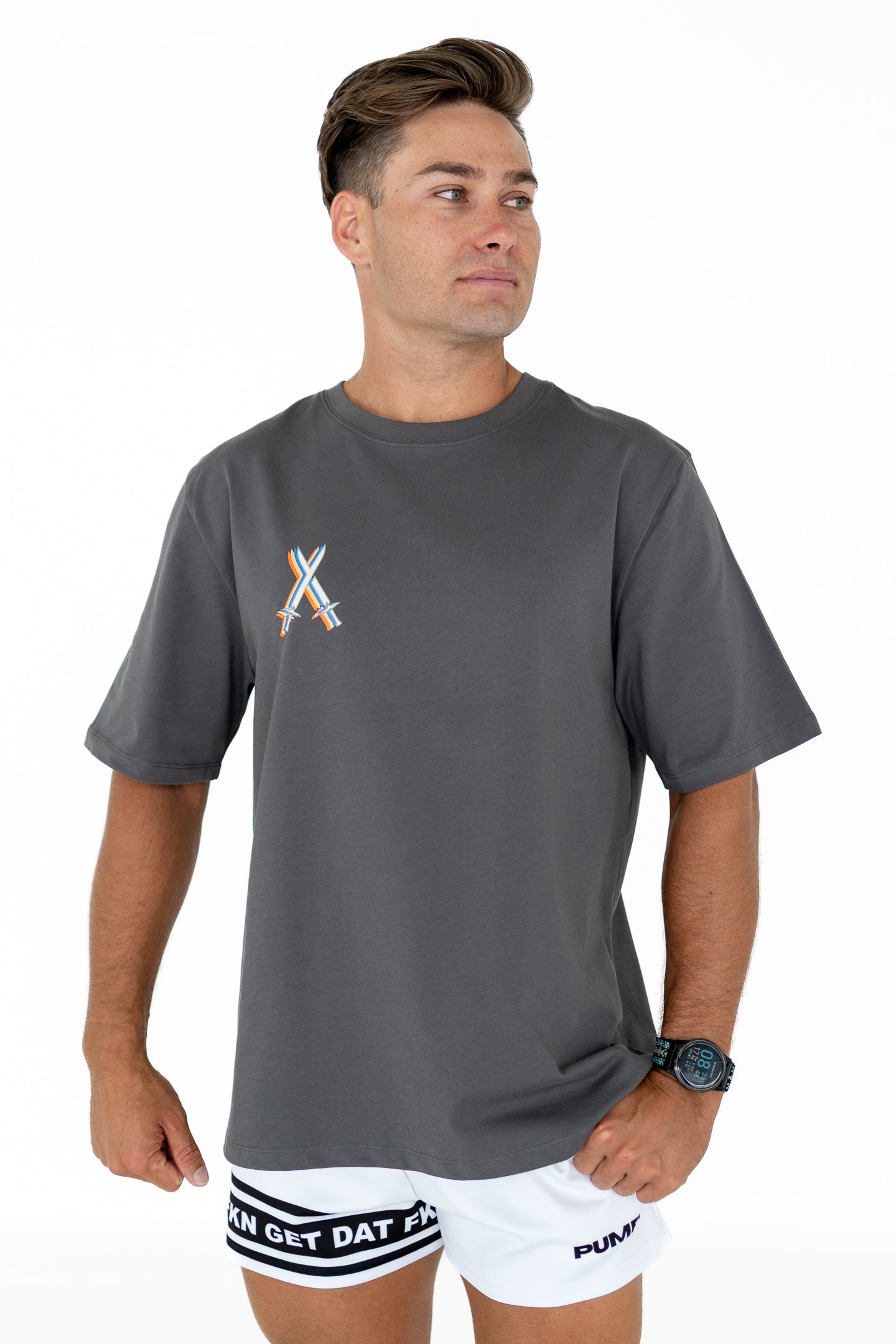 Featuring our signature crossed swords logo to the front, and a statement back print stacked with all of our fav sayings and mottos that echo through the gym walls – this tee is loud, proud, and all vibes. From "Wabang" to "FKN GET DAT" to "Actually Try" - it’s a wearable hype reel.